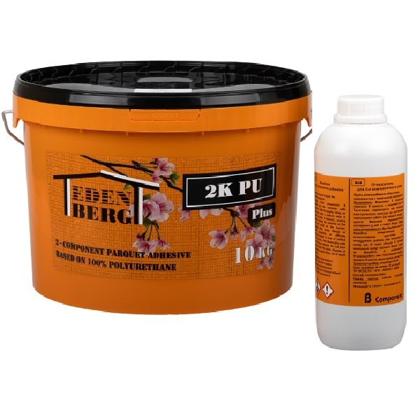 2-х компонентный клей на основе 100% полиуретана. Отсутствуют растворители. Подходит для полов с подогревом. Предназначен для приклейки массивной доски без ограничений, многослойного паркета, штучного паркета, изделий из древесины, ДСП, OSB, резиновых материалов, ПВХ, кварц винила, металла. Рабочее время 90 минут. Полная готовность к нагрузкам через 24 часа.