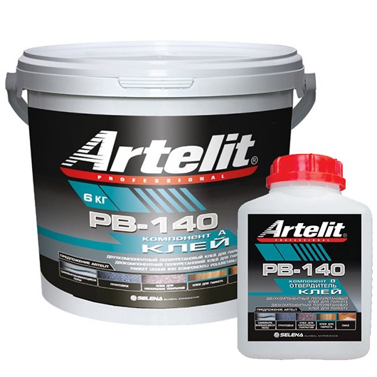 Паркетный клей Artelit PB-140 / 6 кгДвухкомпонентный полиуретановый клей для паркета Artelit PB 140 — высокопрочный, не содержащий растворителей и воды, двухкомпонентный полиуретановый клей. Клей Artelit PB 140 предназначен для приклеивания всех видов паркета из традиционной и экзотической древесины. Клей обладает высокой адгезией к впитывающим и не впитывающим строительным поверхностям: бетону, цементу, монолитным полам (ангидритовым и цементным), самовыравнивающимся смесям и плитам древесного происхождения (фанере, ДСП, ОСП, ДВП). Клей характеризуется очень высокой связывающей силой, идеально подходит для полов с системой обогрева. Не содержит воды. Для получения более высокой адгезии клея рекомендуется покрыть поверхность грунтовкой (например, Artelit PB-230). Расход: 1-2 кг/м². Полное отверждение: через 72 часa . Время работы (при +20°С): до 90 минут ПРИМЕНЕНИЕ ARTELIT PB 140- Приклеивание штучного, щитового и мозаичного паркета из традиционных и экзотических пород древесины;