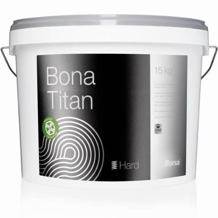 Bona Titan согласно ISO 17178 – жёсткий клей на основе силана с новой революционной титановой технологией для приклеивания к основанию широкоформатных деревянных полов. Bona Titan осуществляет надежное приклеивание даже в самых сложных условиях, без добавки отвердителя или вспомогательных веществ. Большая прочность на сдвиг обеспечивает надежное, стабильное приклеивание, в том числе широких элементов массивной доски и паркета. Грунтовка, как правило, не требуется. Очень большая начальная прочность сцепления, уменьшает риск образования пустот.