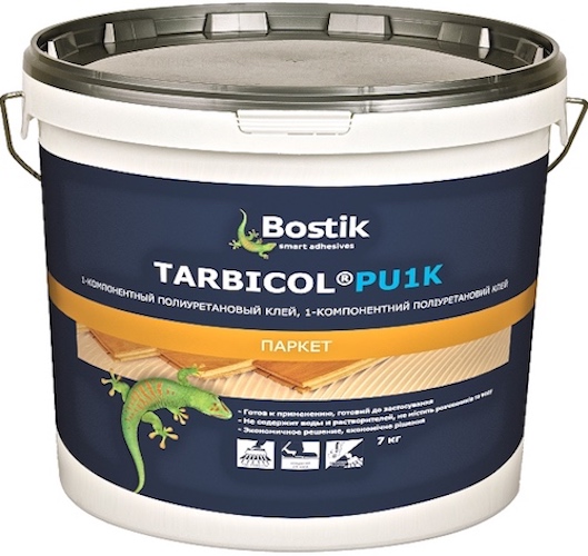 BOSTIK TARBICOL PU 1K – это однокомпонентный клей, изготовленный на основе полиуретана. Предназначен для различных типов паркета, например, наборного паркета и необработанной древесины, ламината, багета, плинтусов. Применяется для работы с такими основами, как бетонные плиты, каменная и керамическая плитка, фанера, ДВП и ДСП, металлические конструкции и др.