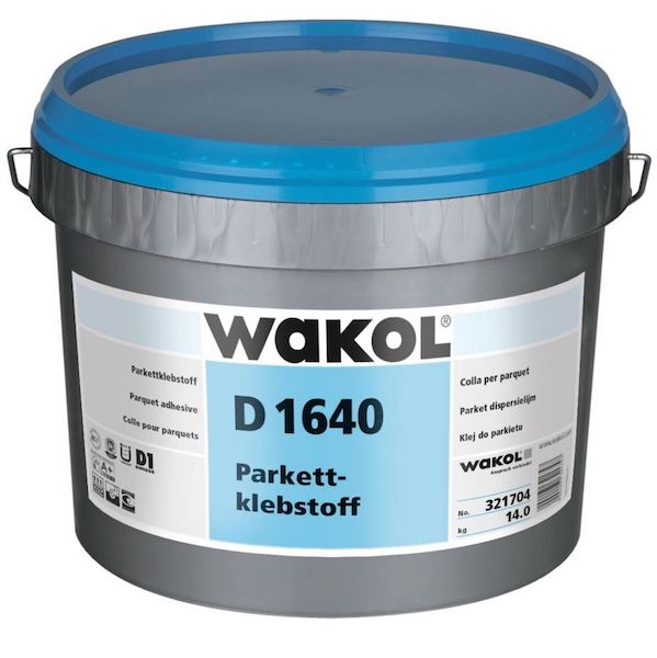 Область применения: Дисперсионный клей предназначен для укладки мозаичного паркета, торцевого паркета и дубового паркета-брусчатки, а также двухслойного готового паркета на хорошо впитывающие основы.WAKOL D 1640 соответствует требованиям DIN 281 Особые свойства: - Подходит для стульев на колесиках