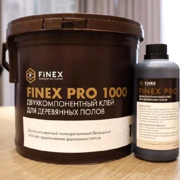 Клей FINEX PRO 1000 (10 кг)FINEX PRO 1000 — это профессиональный двухкомпонентный полиуретановый клей для паркета, не содержащий воды и растворителей. Разработан специально для укладки всех видов деревянных напольных покрытий, включая массивную и инженерную доску. Основные характеристики Тип: Двухкомпонентный ПУ-клей (Компонент А — 9,2 кг, Компонент B — 0,8 кг). Консистенция: Пастообразная, обеспечивает стабильность клеевого гребня. Эластичность: Высокая прочность шва сочетается с эластичностью, что позволяет компенсировать сезонные колебания древесины. Безопасность: Гипоаллергенный состав; подходит для мастеров, чувствительных к эпоксидным смолам и аминам. Применение и преимущества Универсальность: Подходит для любых оснований и пород дерева, в том числе для экзотических. Теплые полы: Допускается использование с водяными системами подогрева пола. Стабильность: Не дает усадки после отверждения. Условия работы: Рекомендуемая температура в помещении — от +18 до +22 °C, влажность — 45–55%. Рекомендации по хранению Хранить в плотно закрытой таре при температуре от +5 до +25 °C. Срок годности при соблюдении условий — 12 месяцев.