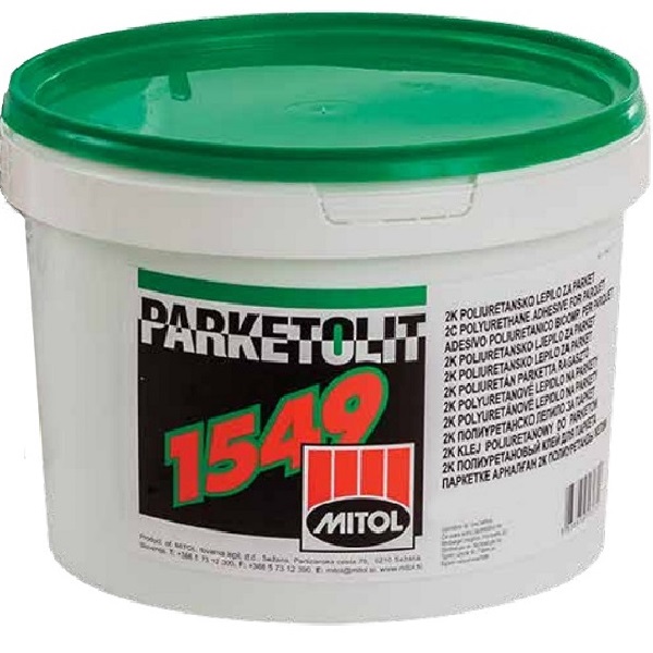 Клей для паркета MITOL PARKETOLIT 1549Описание PARKETOLIT 1549 – двухкомпонентный эпоксидно-полиуретановый клей без содержания растворителей. Отвечает требованиям стандарта DIN 281 для приклеивания паркета. Преимущества
