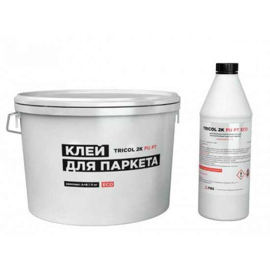 Клей TRICOL 2K PU PT ECO / 11 кгКлей Tricol 2K PU ECO – представляет собой двухкомпонентный полиуретановый клей бюджетного класса. Производство Россия. Обладает очень выгодным соотношением цена/качество. Этот клей обычно применяется для приклейки инженерной и паркетной доски, фанеры, а также массива умеренных габаритов из стабильных пород дерева. Особенно часто его используют для укладки фанеры, в силу его прочности и бюджетности. Он весьма удобен в применении, поскольку обладает длительным временем “жизни” – до 120 минут. Благодаря этому не нужно спешить выработать банку. Расход: примерно 1-1.3 кг на 1 м2. |