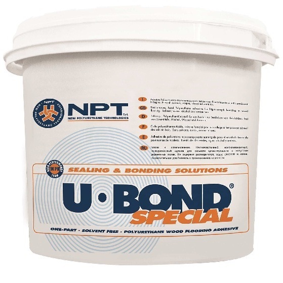Паркетный клей NPT U-Bond Special 16 кгU-Bond Special – это готовый к употреблению твёрдо эластичный полиуретановый однокомпонентный клей, не содержащий растворителей и воды для профессионального монтажа деревянных половых покрытий. Он отличается от любых других однокомпонентных клеёв своей прочностью и большой схватывающей силе, которая обеспечивает полную фиксацию досок. Благодаря специальному составу и сильным характеристикам продукта U-Bond Special остается универсальным клеем, который позволяет получать замечательные результаты по укладке даже в трудных условиях. - Однокомпонентный, без растворителей